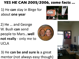 Edgar always liked to take hiking trips to exotic places. One of his legendary trips involved him and his fellow hikers being dropped off by plane, hiking through the snow, then meeting the plane again a week or so later to be picked up. Except the plane wasn't there when the hikers arrived to the pick-up point. I believe that it took at least a day before the plane finally showed up. Apparently the pilot who was supposed to pick them up was frantically circling trying to find them, but had the wrong location. With stories like this floating around, Edgar's PhD students would joke that we should get his signature on our dissertation before he left on his trips.
